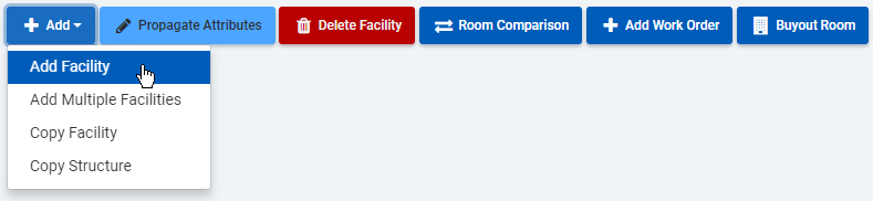Alternatively, select Manage Facilities from the Facilities menu. Click the Add drop-down menu, and select Add Facility. The Add Facility screen is displayed.