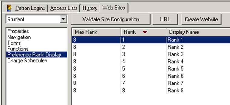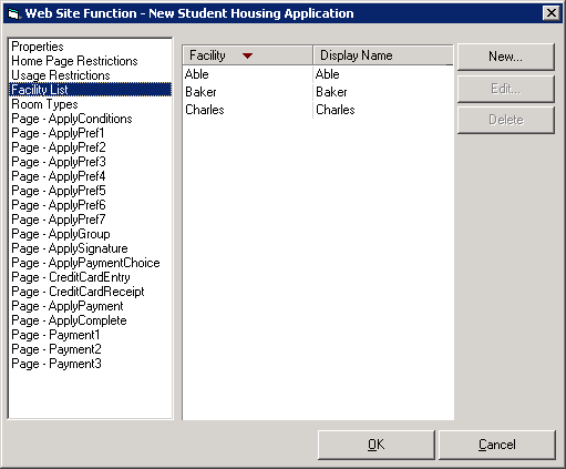 1. In Odyssey HMS, in the Facility List of the application, add all buildings that the patron must rank (Web > Web Sites > Functions > Application > Facility List).