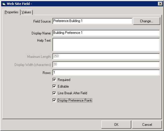 In the Properties tab, for the Display Name, name the Fields Building Preference 1, Building Preference 2, etc.