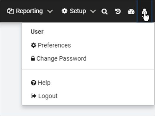 Use the Preferences page to define user preferences for ResCenter. The User Preferences page is available via a drop-down menu by clicking the user icon in the top-right corner of the ResCenter Web site.