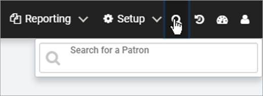 From anywhere in ResCenter, use the Patron Search drop-down menu to search for a patron. Enter all or part of a patron’s name and hit Enter.